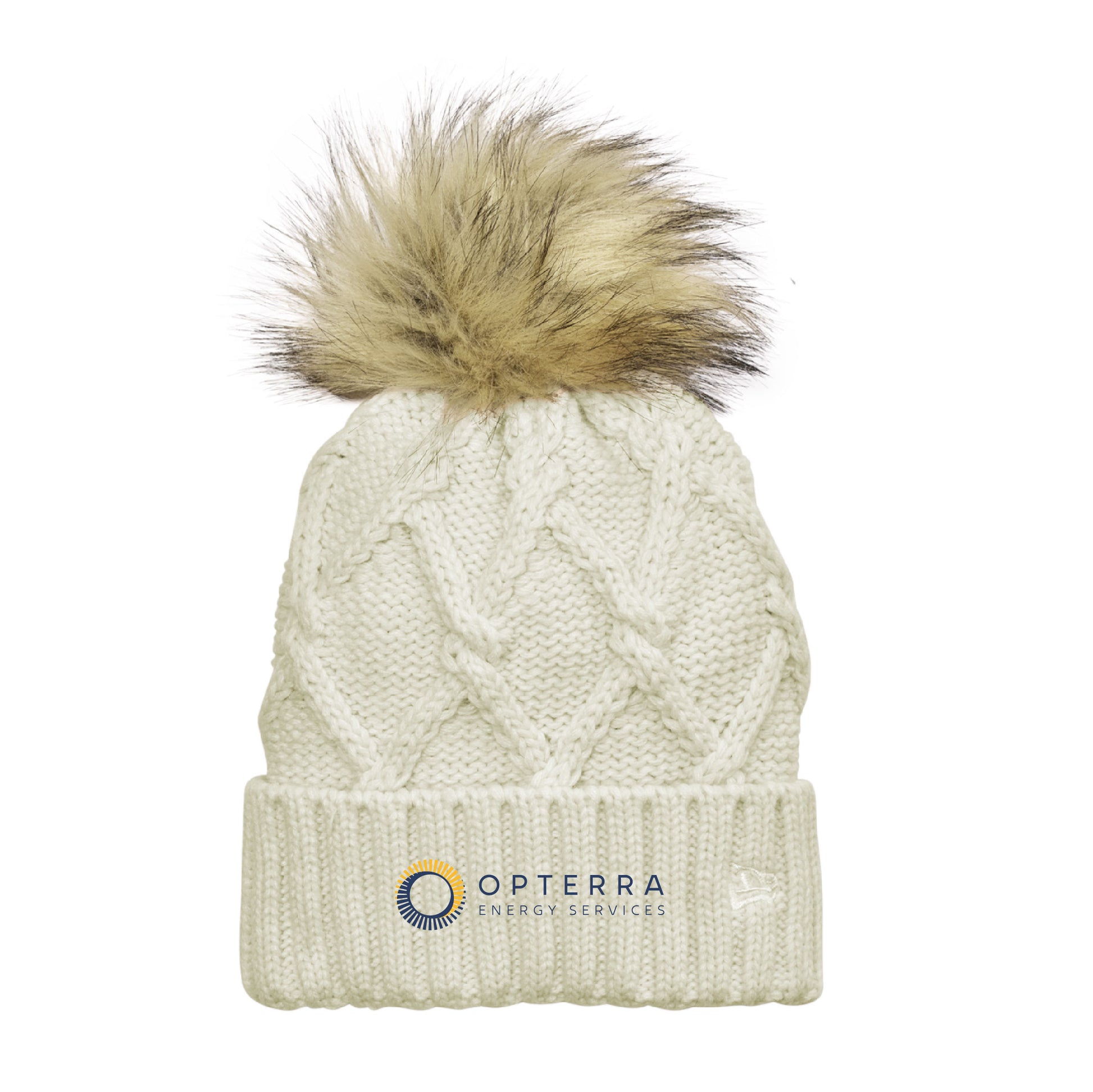 Totally on-trend, this women's beanie has a thick ribbed cuff and a cable knit crown that’s topped off by a fun faux fur pom.